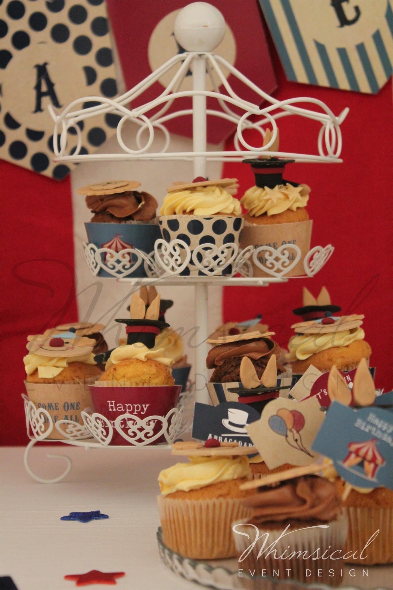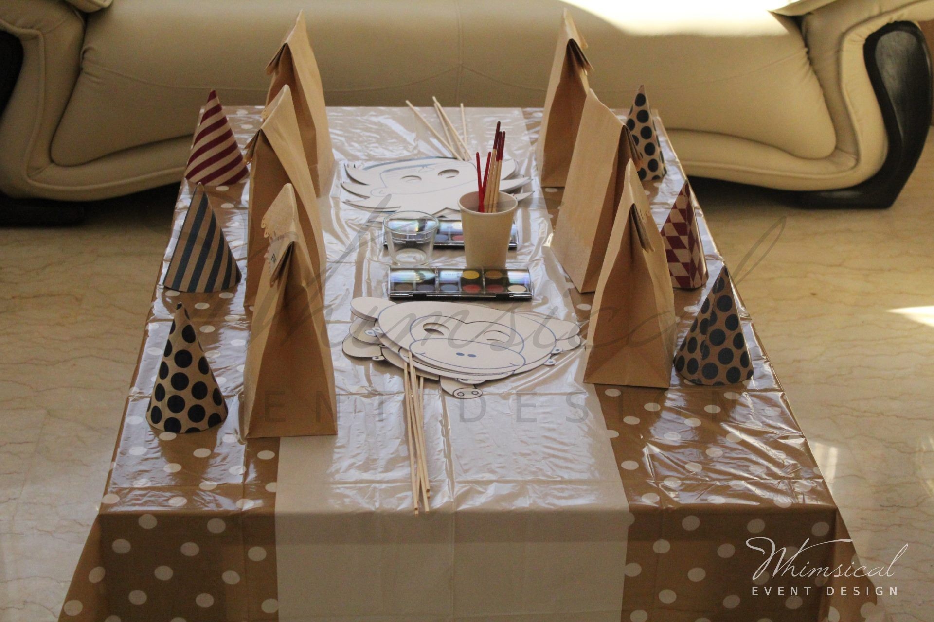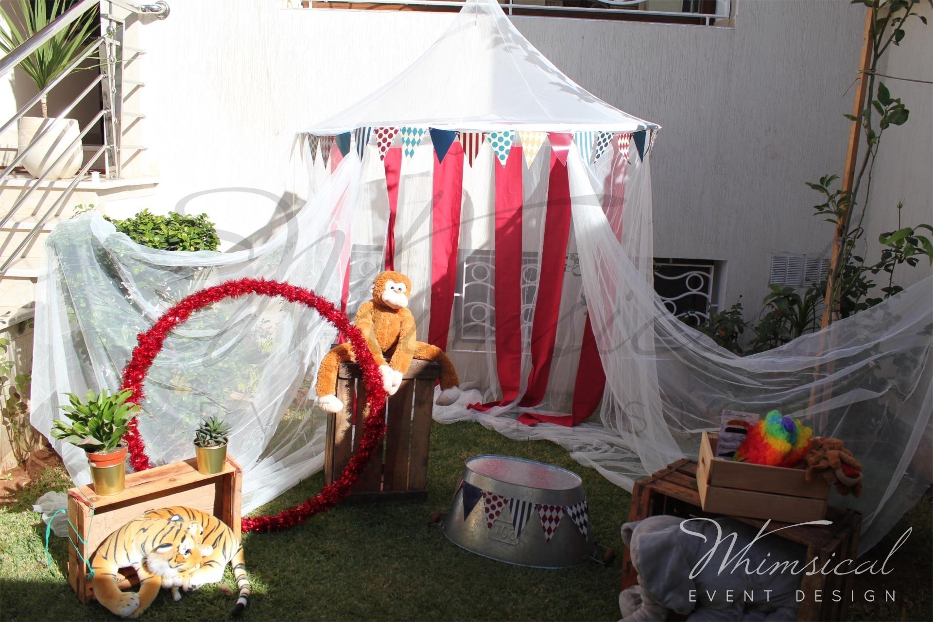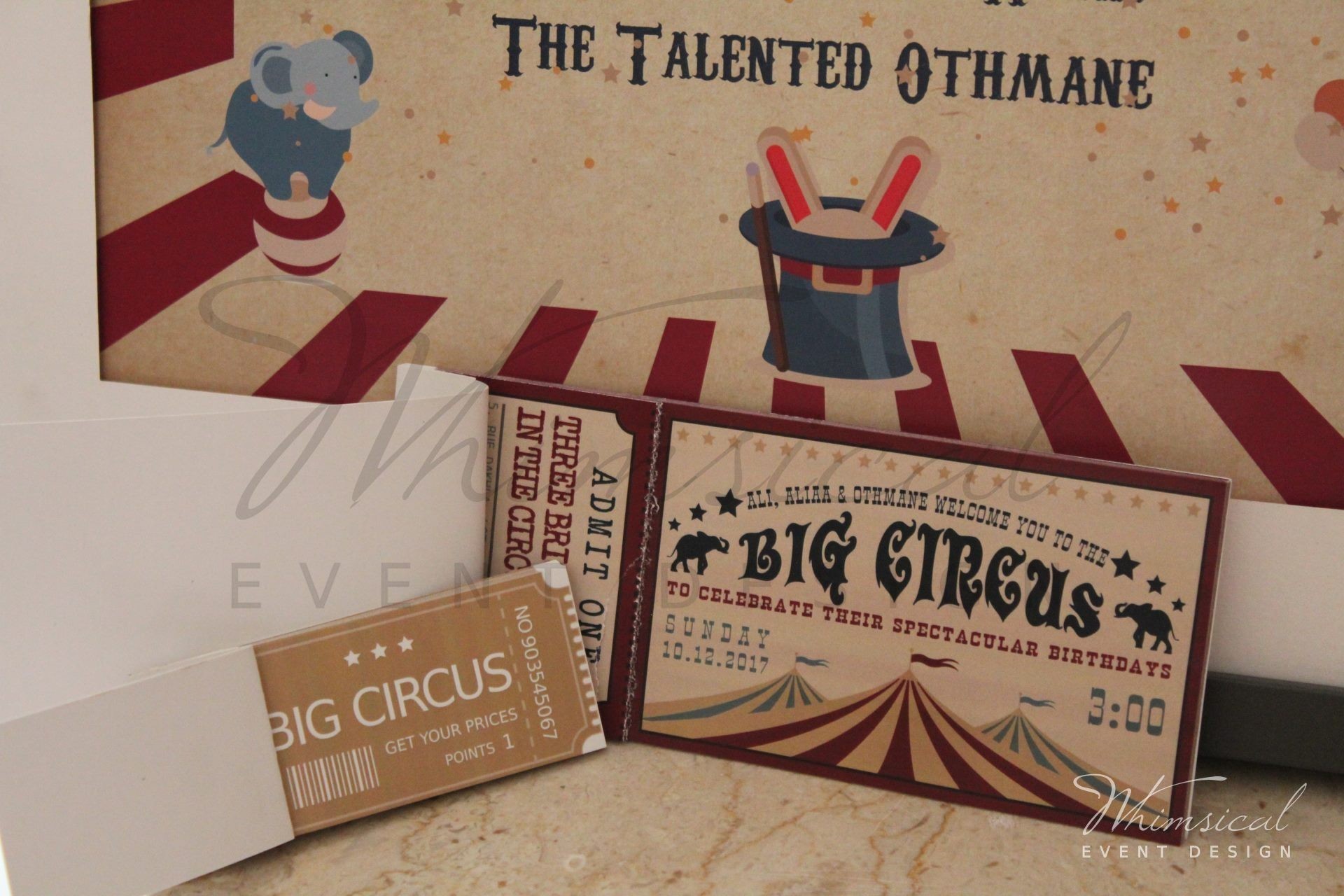 Un vrai petit carnaval, avec une décoration en draps de tente de cirque, des caissettes vintage, des rosettes en papier au thème, des tickets d'entrée, des tickets de jeux. des masques et chapeaux à colorier, des fun boxes, et bien sûr des gâteaux en thème. Le photobooth étaient sous forme de tente de cirque, avec des props, des animaux et caissettes. Les enfants ont fini par le considérer comme un QG.