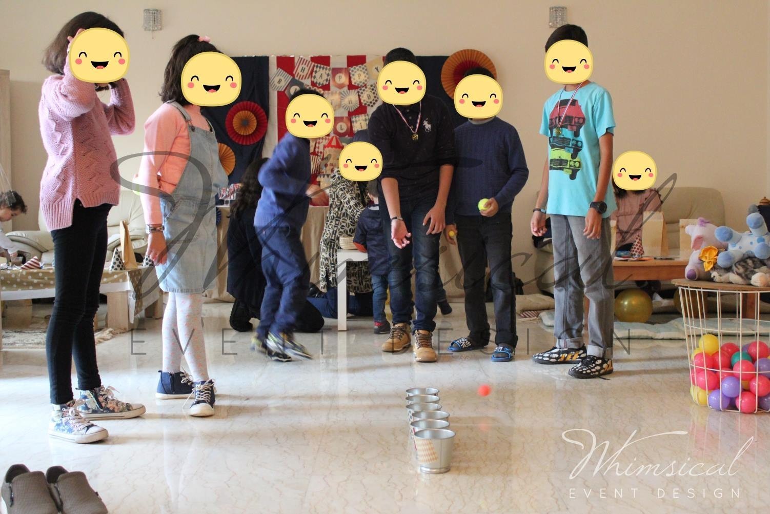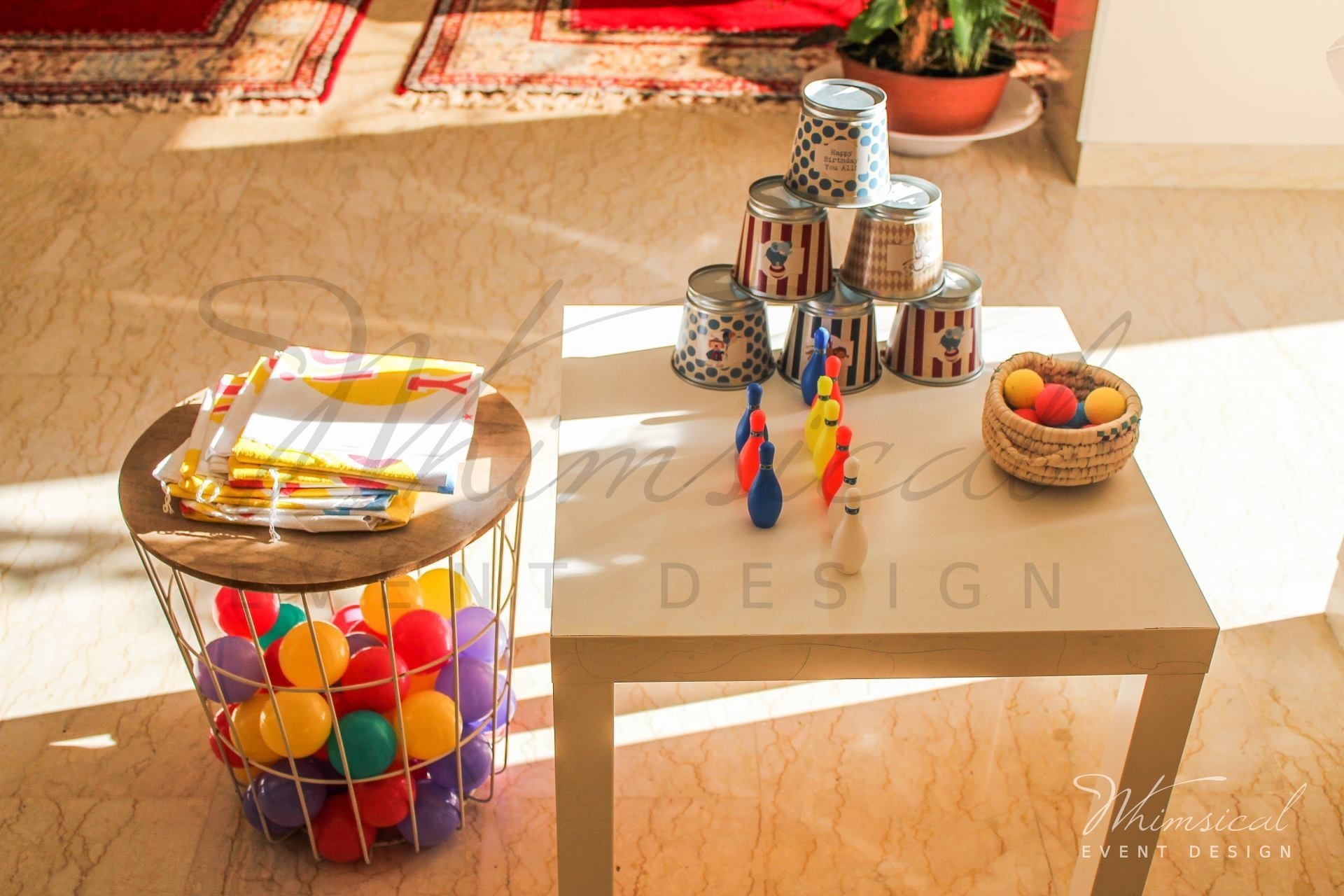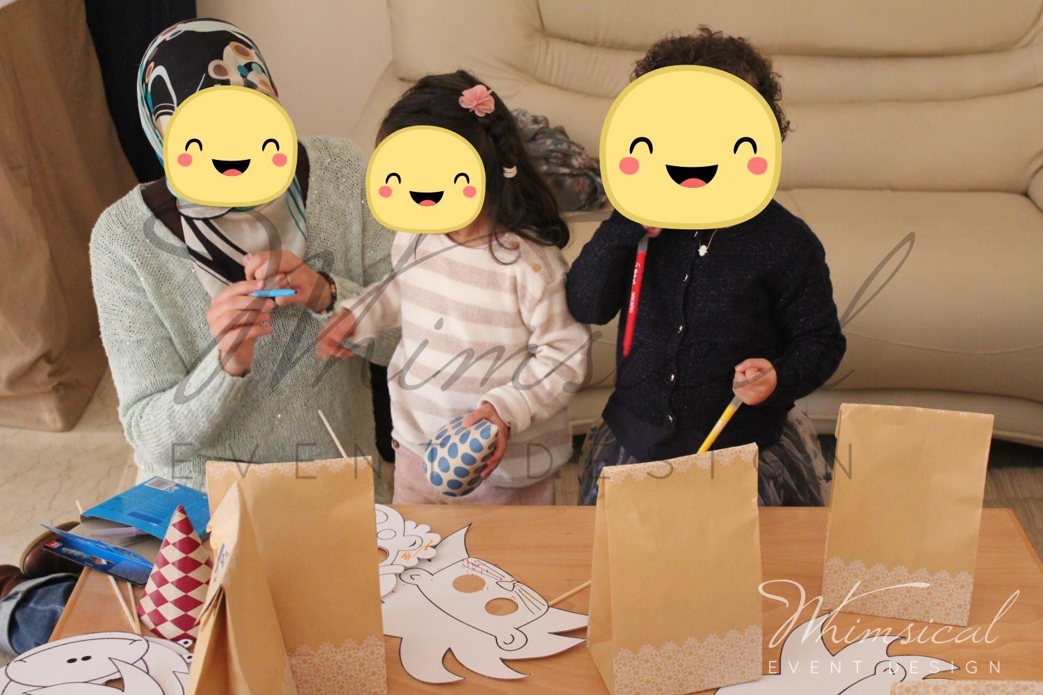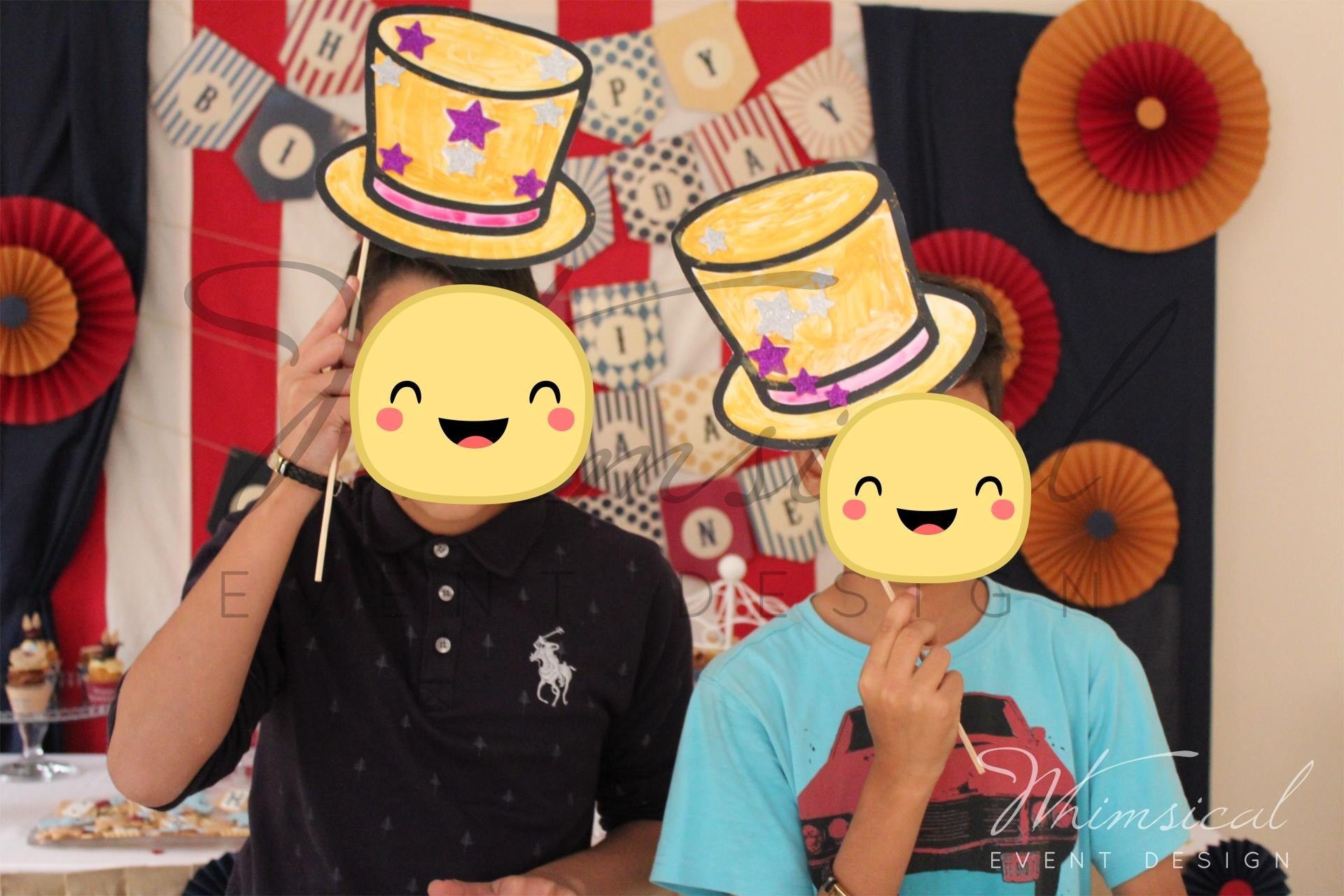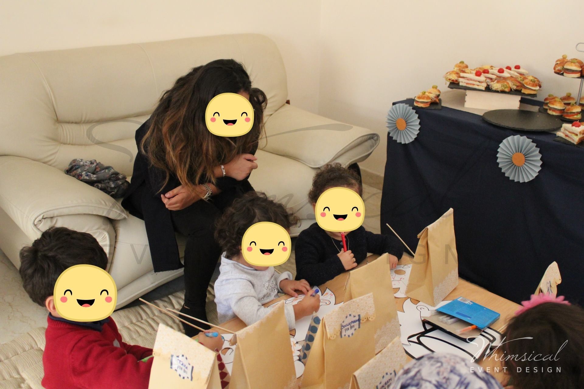 Un vrai petit carnaval, avec une décoration en draps de tente de cirque, des caissettes vintage, des rosettes en papier au thème, des tickets d'entrée, des tickets de jeux. des masques et chapeaux à colorier, des fun boxes, et bien sûr des gâteaux en thème. Le photobooth étaient sous forme de tente de cirque, avec des props, des animaux et caissettes. Les enfants ont fini par le considérer comme un QG.